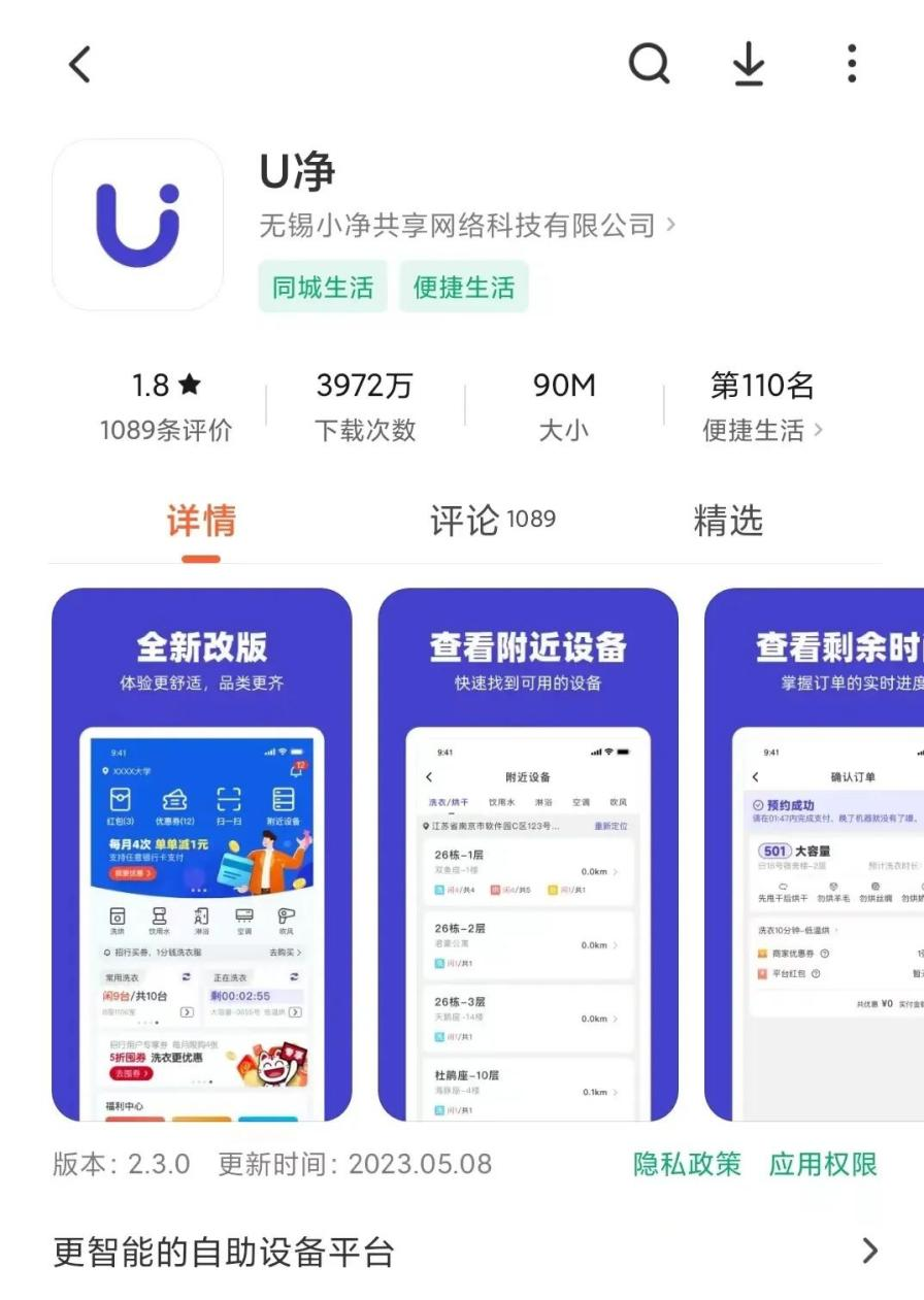 ①洗衣机:下载使用u净app,打开扫一扫功能,扫描洗衣机上二维码即可。