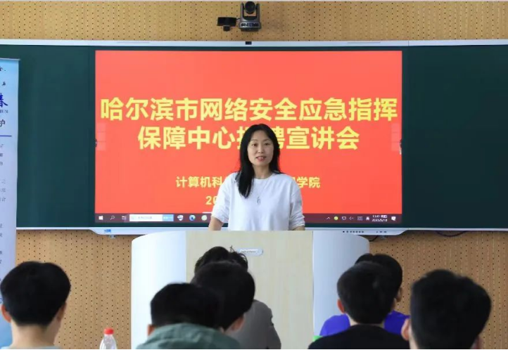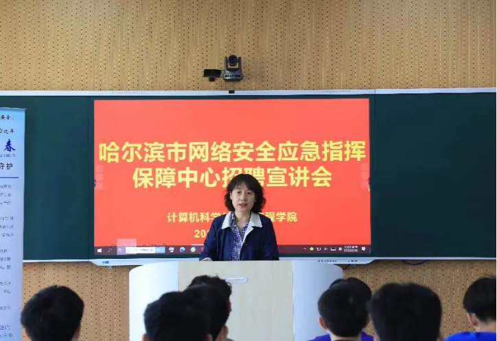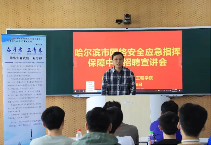 已入职哈尔滨市网络安全应急指挥保障中心的优秀毕业生重返母校,为大家分享了单位工作氛围及自己的工作体验,并详细介绍公司的福利待遇、学习机会,让同学们更直观的贴近就业单位,提高毕业生们的积极性。