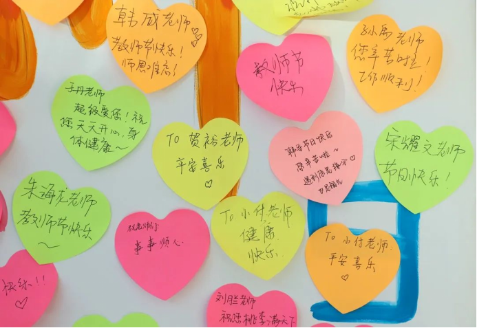 展板上,真情流露的文字,诉说着学子们对老师的敬仰与感恩。朝阳不息,步履不停。深耕教育的土地,年年如一。