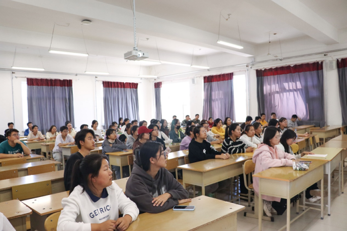 接着,段喜萍老师针对同学们未来就业问题,向同学们介绍了公共必修课、专业必修课、公共选修课、实践环节学分分布以及课程内容,并鼓励同学们在提高自身专业素养的同时,积极参与竞赛,为自身专业能力的提升打下基础。