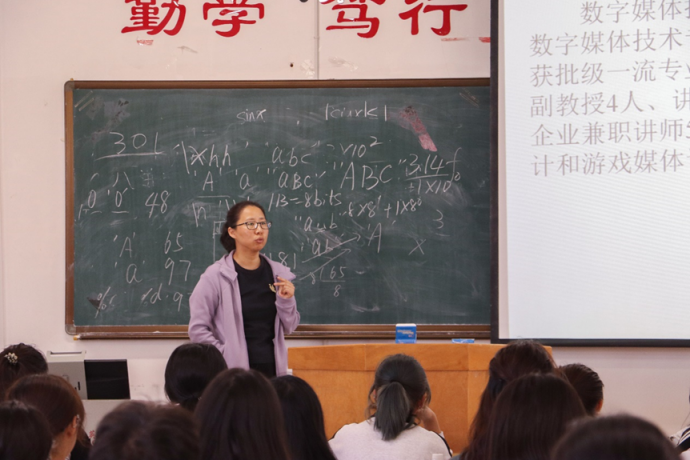 首先,段喜萍老师介绍到数字媒体专业师资力量雄厚,科研实验室配备设施完善:专业创建于2006年,2009年获批省级重点专业,2019年获批省级一流专业建设点,2022年获批国家级一流专业,现有教师12人,其中教授一人,副教授四人,讲师七人,博士四人,在读博士两人,合作企业兼职讲师五人,在校生280余人。当前,数字媒体技术专业下设游戏软件设计和游戏媒体设计两个教研室,科研室内配备设施完善。经过段老师的介绍,同学们对本专业的认知加深,了解加强,同时对未来学习方向的规划也更加清晰。