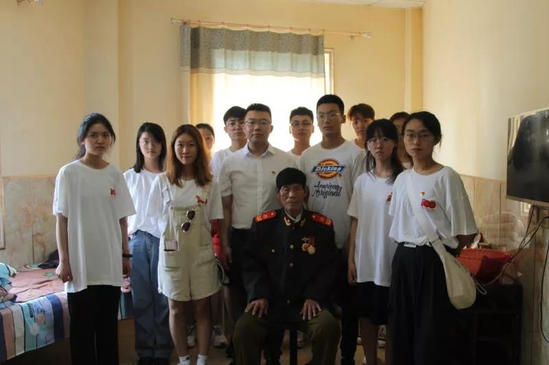 实践团先后走访了三位老党员,其中一位老党员是抗美援朝志愿老兵,实践团来到老党员家中,为他们献上事先准备好的党员贺卡和礼物,以表达青年一代的敬仰之情。各位老党员结合