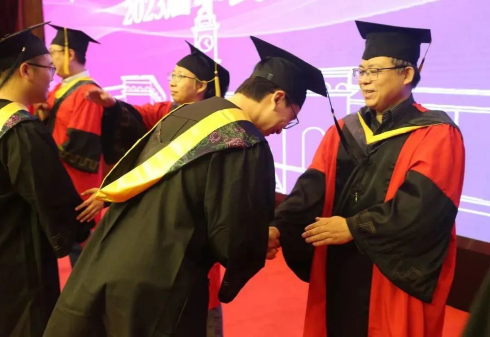 上午9点,典礼在庄重浓厚的国歌中拉开序幕。首先,由学院副院长季伟东、党委副书记郝俪娜分别宣读《拟获得学士学位2023届毕业本科生名单》、《拟获得硕士学位2023届毕业生名单》;院长周国辉宣读《2023届毕业生考研光荣榜名单》。本科生代表张浩、毕业生研究生代表岳玉麒同学抒发了对母校、对学院由衷的感激之情,他们表示今后将牢记“敦品励学,弘毅致远”的校训精神,不忘“勤学、笃行、求实、创新”的院训精神,做富有责任、敢于勇挑重担的人,不畏艰险、追求卓越的人!