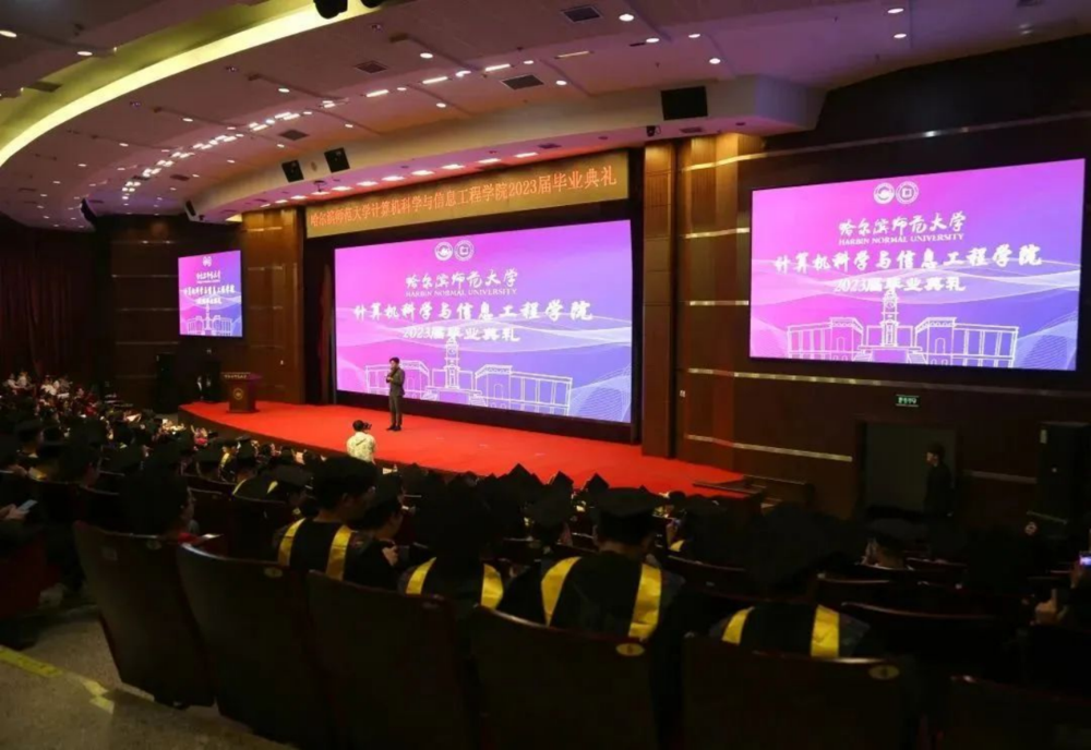 凤凰花开,艳丽如火,骊歌声声,不舍情浓。为深入贯彻落实我校毕业生离校教育“十个一”工作,引导学生增强社会责任感和母校情怀,5月10日上午,哈尔滨师范大学计算机科学与信息工程学院2023届毕业生毕业典礼在科学会堂隆重举行。学院领导班子、教师代表、全体辅导员、2023届毕业生共同参加了此次盛会。
