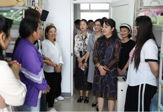 在走访新生宿舍中,学院领导对新生的到来表示欢迎,亲切地询问大家入校以来的适应程度,观察住宿情况,希望同学们尽快调整作息习惯,与室友和谐相处、互帮互助,以更加积极饱满的状态投入到新学期的学习生活中,不断的丰富大学生活,开启新学期新征程。