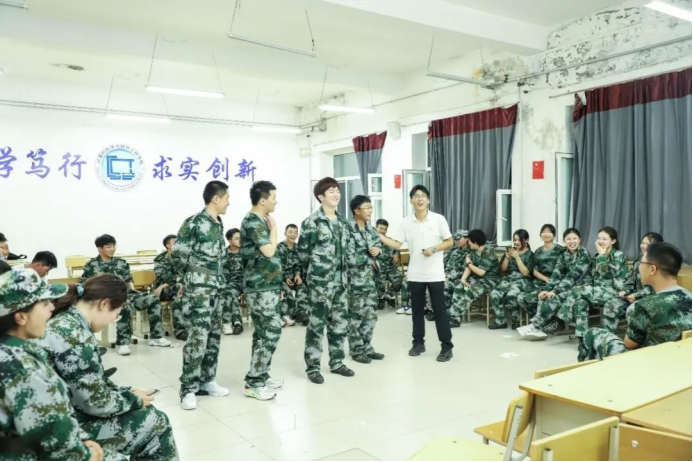 紧接着,开展了一系列的活动:花样握手—接龙—相互敲打放松。新生们根据主持人的口令进行花样握手,相互介绍自己,并通过猜拳游戏前后连接,最后所有人结成一条巨龙。将巨龙的首尾相接,组成一个圈,后面的成员帮前面的成员揉肩膀,捶背。过段时间后大家集体向后转,为刚才帮自己揉肩的成员服务。这个活动让同学们更深入地了解了彼此,不仅建立了更亲密的关系,还舒缓了紧张的情绪。