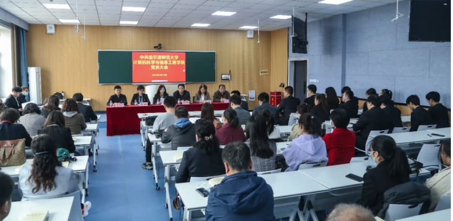 4月19日下午,中共哈尔滨师范大学计算机科学与信息工程学院党员大会在理工一号楼411教室隆重召开,433、519教室设置分会场同步进行会议。全院应到会的师生党员256名,因事、因病请假4名,实到会252名。会议由学院党委副书记郝俪娜主持。