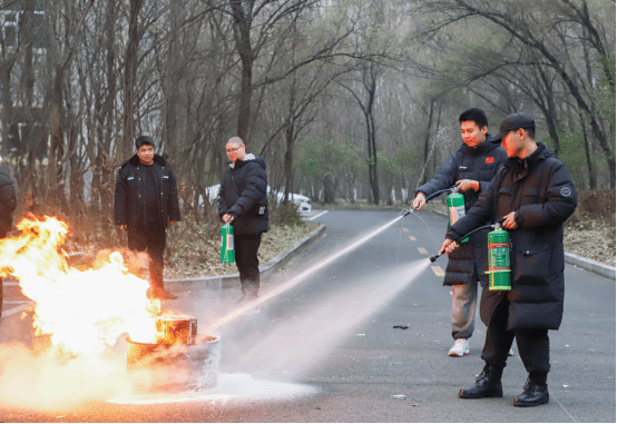 灭火实操环节,李卓阳老师演示水基灭火器使用流程,为师生讲解“提、拔、握、压”要领。同学们踊跃参与,亲手扑灭火源,实现“零距离”体验与“实战化”学习,提升应急处置能力。